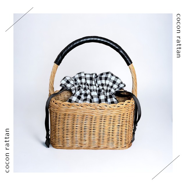 ご覧いただきありがとうございます♡ シンプルで上品なショルダーバッグ。 ナチュラル素材であるラタンを使用し、 程よいサイズ感が、どんなスタイルにも マッチします。 デイリーからリゾート地でのお出かけまで、 幅広いシーンで活躍してくれること間違いなし です。 タテ 約13cm ヨコ 約23cm マチ 約8cm 開口部10cm かご:ラタン(籐) 内袋:コットン生地 巾着 ギンガムチェックかブラックをお選びいただけます。 ショルダー:牛革100cm〜120cm調整可 コーヒー染め、ニス仕上げ ファー:クリーム色 カニカンで引っ掛けて使用します 長財布、スマホ、ハンカチ、薄めのポーチ 入ります。 ※受注生産ですので、2週間程度お時間をいただいて おります。 ※天然素材を使用しているため、稀にささくれがある場合がございます。 その際、引っ張らずにハサミで切ってください。 また、水に濡れた場合は拭き取ってよく乾燥させて下さい。