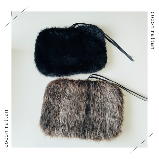 ラタンかごバック 透かし編み(ファーカバー付き)