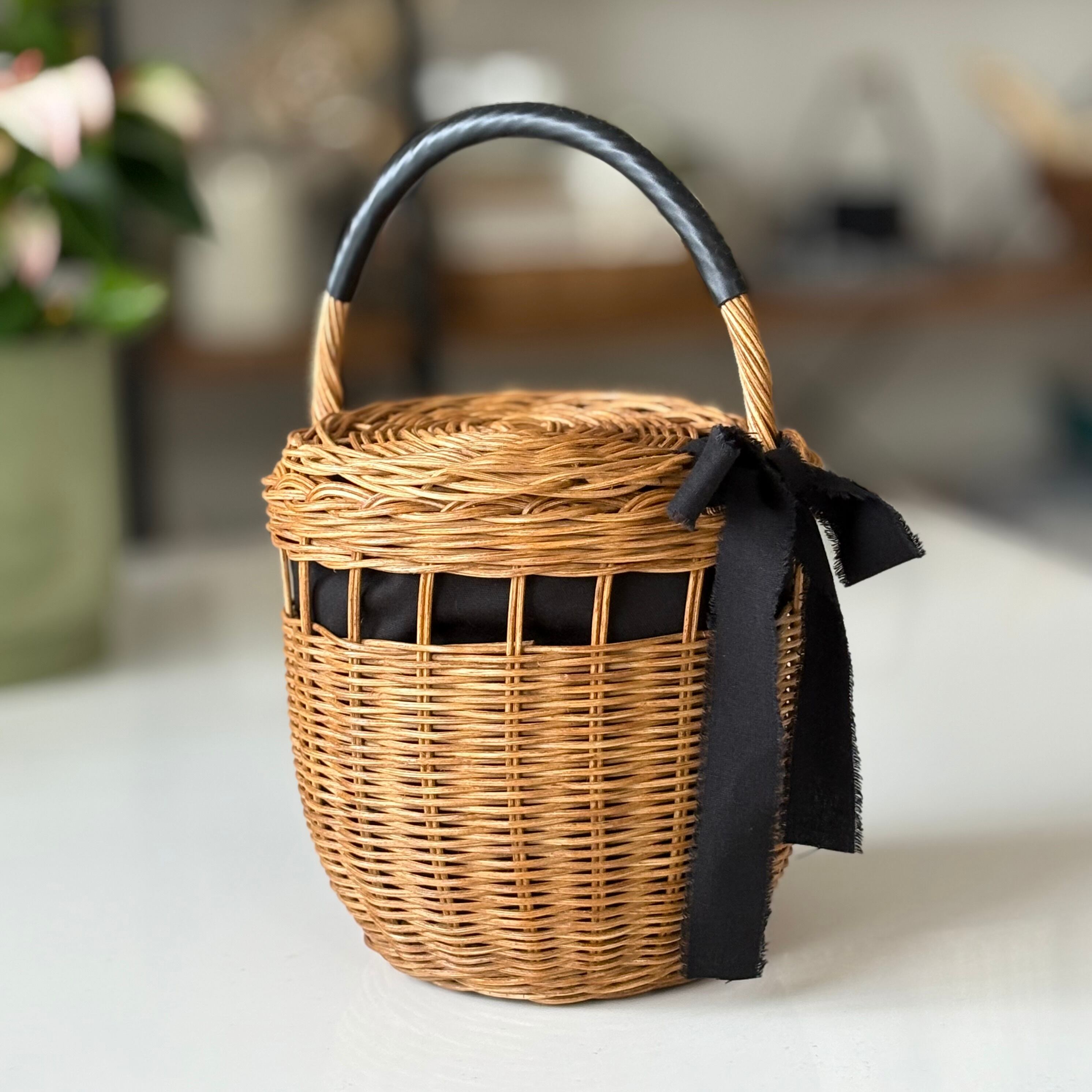透かし編みのラタンかごバック。